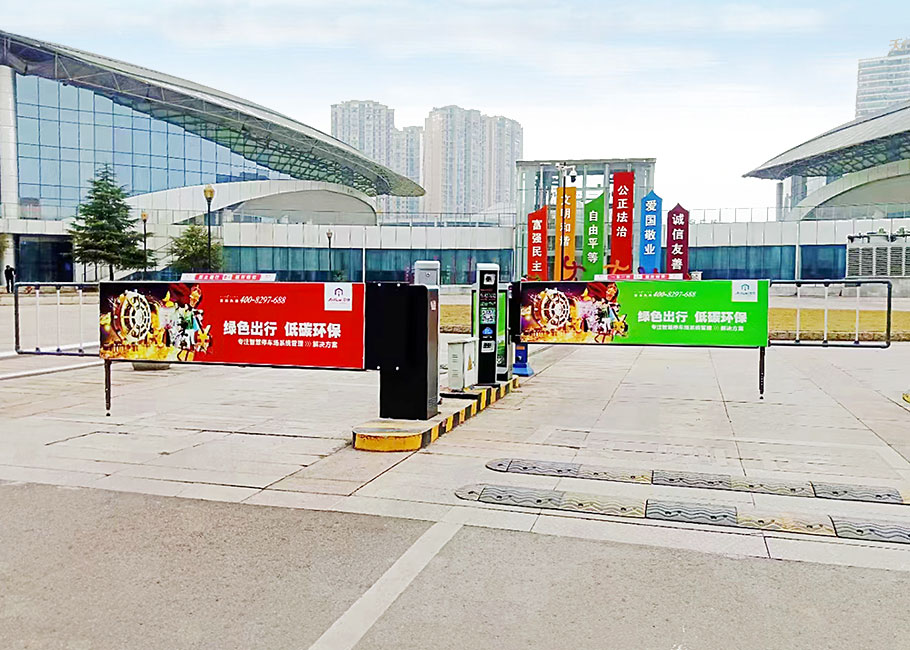 D203卡布燈箱廣告道閘+P815SP車(chē)牌識(shí)別——四川宜賓南溪文體中心停車(chē)場(chǎng)4進(jìn)4出案例
