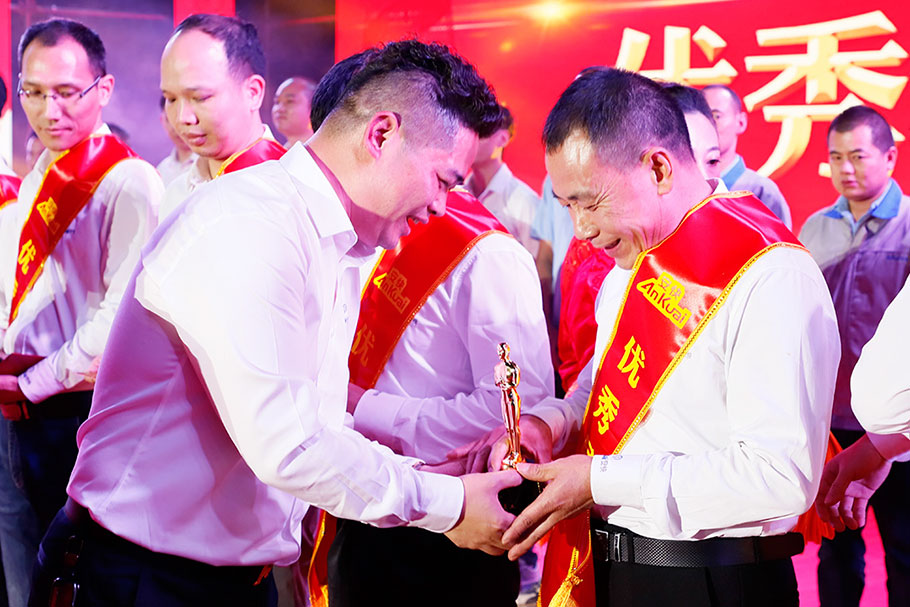 表彰優(yōu)秀,鼓勵先進,中場頒獎典禮開始。肖董、陳總分別為年度“優(yōu)秀員工”頒發(fā)個人榮譽獎杯和現(xiàn)金大紅包,充分肯定了他們在工作中的努力和成績。