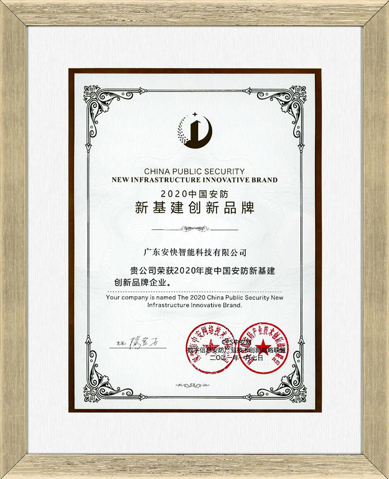 榮獲2020中國安防新基建創(chuàng)新品牌