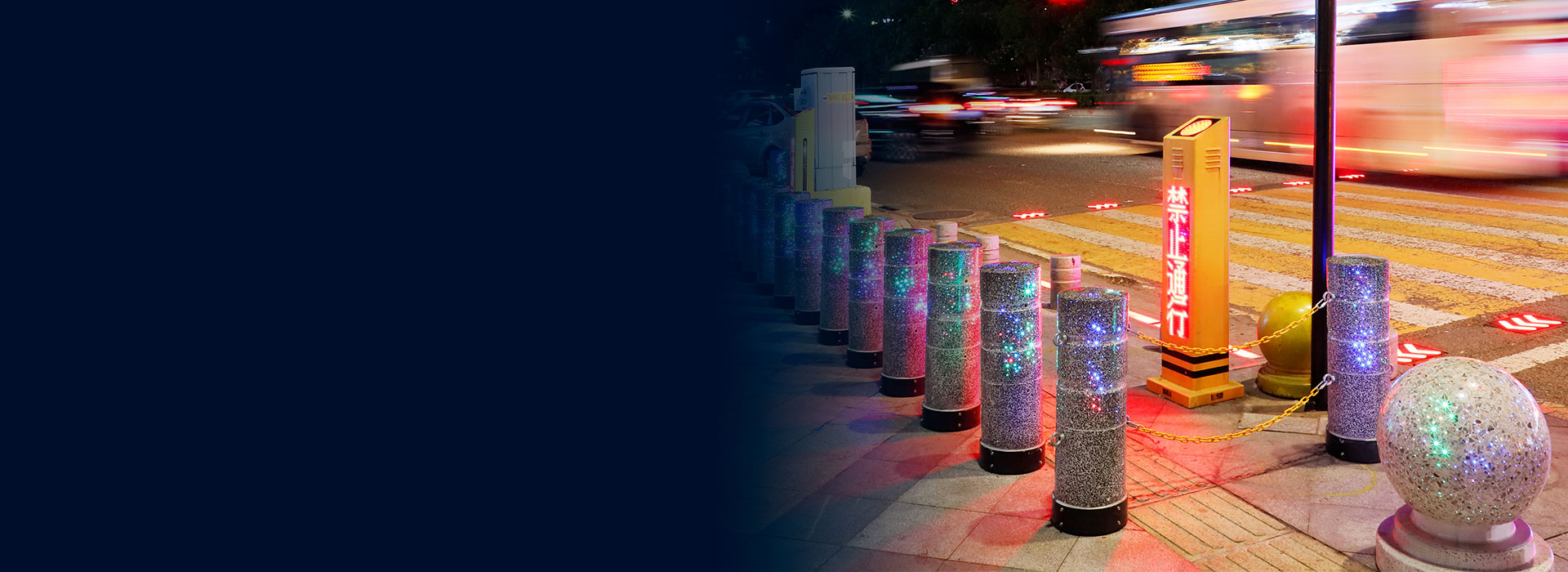 行車路口與發(fā)光障礙球、防撞柱有效結合,警示效果好,有助于行人與車輛的安全,具有獨特的亮化效果